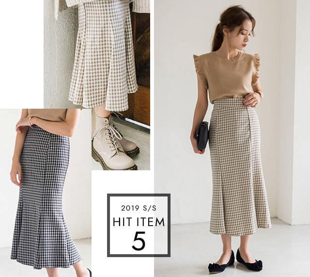 チェックパターンマーメイドぺプラムスカート(全2色)/¥5,990(税込)