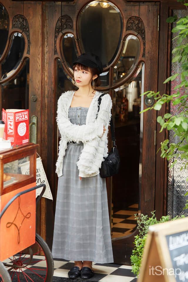 甘いワンピにラフに羽織って、甘すぎない全体バランスを意識して。