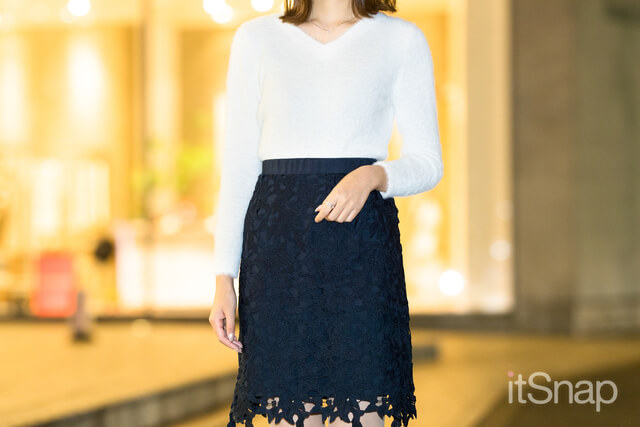 白やピンクなど王道のモテカラーは使っていないのに、モテオーラの漂うグッドガールコーデ。