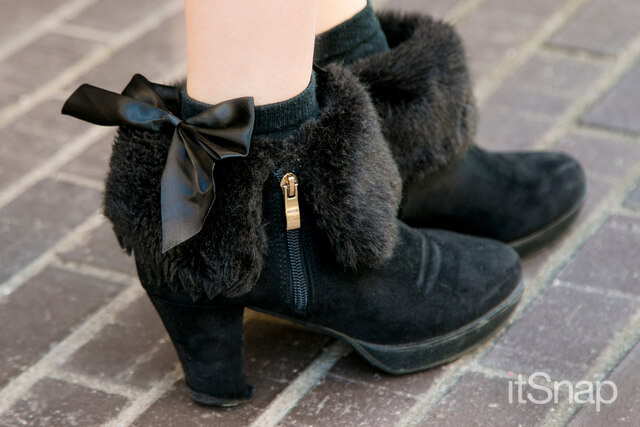 ファー×リボンの合わせワザで黒なのにフェミニンに