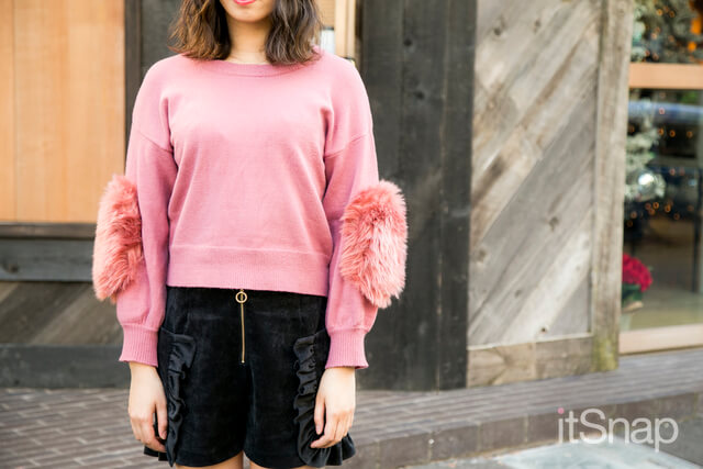 ピンク&そでのボリューミーファーで可愛いの相乗効果