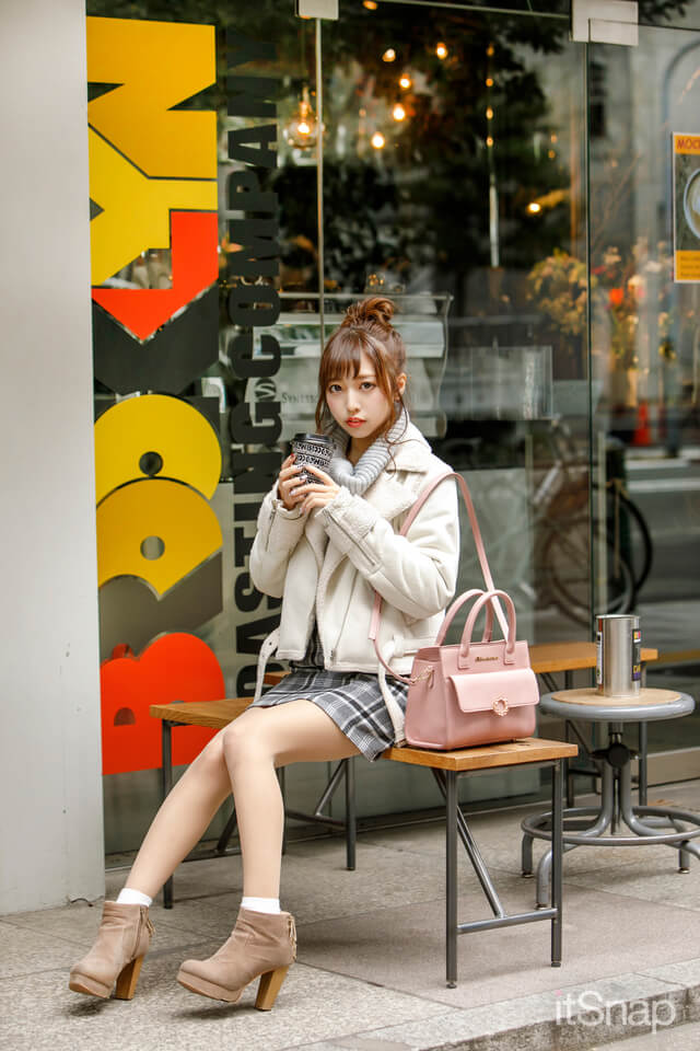 淡いカラーでまとめた優しげコーデに、ヘルシーな脚見せスタイルは女子力抜群でモテ度もアップ! オフタートルニットのときは、おくれ毛をゆるっと落としたガーリーなお団子ヘアで仕上げると、バランスが良く小顔効果も狙えます。