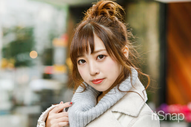 冬のおしゃれ&防寒に欠かせない、ボリュームたっぷりのマフラーを巻いてもルーズなポニーテールなら、もたつかずスッキリした印象に。