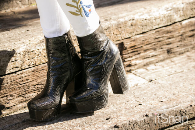 パイソン柄のブーツは合わせやすいブラック。