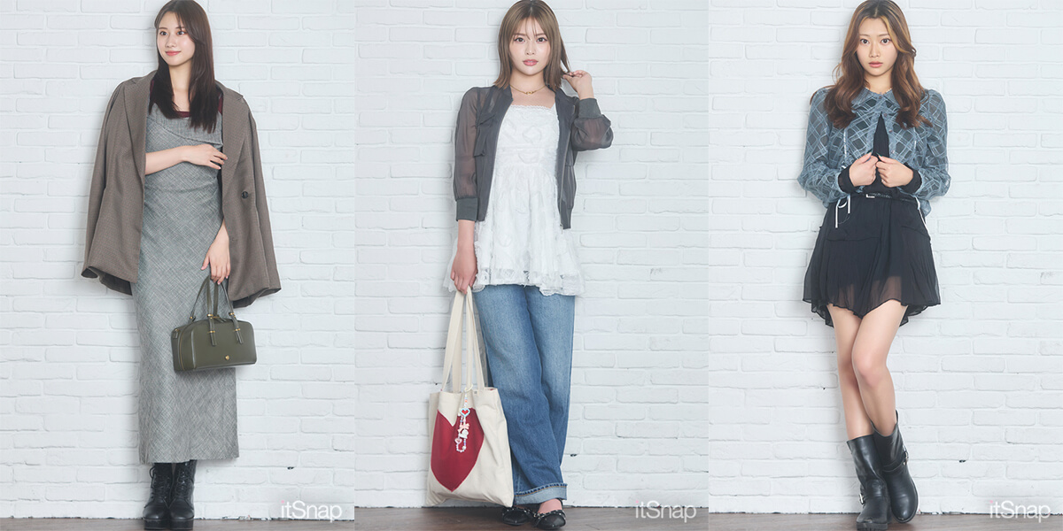 「秋はシックなカラーが気分なので、アウターはブラウンジャケット(Chico)をセレクト。肩がけするだけで、全体のバランスがぐっと大人っぽく仕上がります。インナーにワインレッドのタンクトップ(PAGEBOY)を仕込んで、華やぎをプラスしました。そして、メインはSNIDELのワンピです☆ 体のラインがきれいに見えるシルエットが最高にお気に入り♡ スクエアフォルムのバッグ(Lily Brown)はコンパクトでも容量十分で、濃いめのグリーンがコーデを引き締めてくれます。足元は厚底ブーツでスタイルアップしています!」