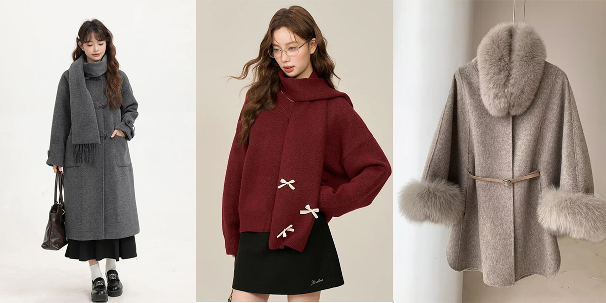 新年会などのお祝いムードにぴったりなのが、華やかオーラをまとえる赤のデザインニットセーター。リボンディテールが目を引くスカーフがセットになっていて、モードな可愛さを演出してくれます。写真映えするアイテムなので、SNS用の集合写真でもしっかり主役になれちゃいます! コーデするときは、甘くなりすぎないように黒ボトムやロングブーツと合わせるのが、おしゃれ上級者に見えるコツ♡