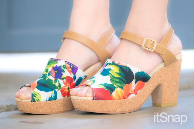 ナチュラルなコルク調素材とトロピカルな花柄がインパクト大のシーズンライクな厚底サンダル。履くだけで華やかさが増すので、シンプルなコーディネートのアクセントとして取り入れて。