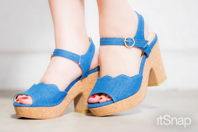 デニム素材をポイントにコルク調のソールでカジュアル感をプラス。足を包み込むようなクロスデザインが、甲をしっかりとホールドしてくれます。どんなコーデにもすんなりと馴染むので、1足持っていればこの夏大活躍すること間違いなし!