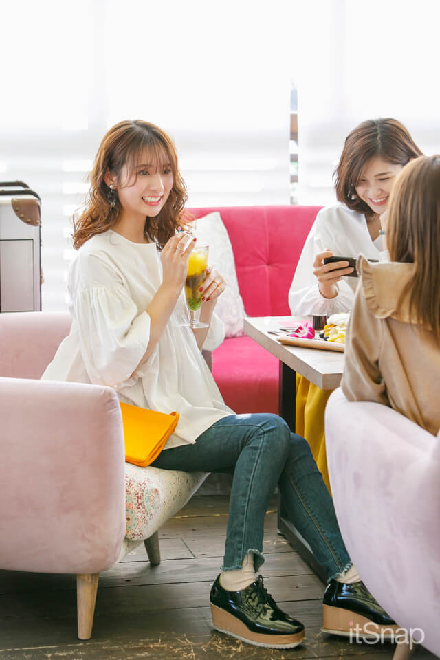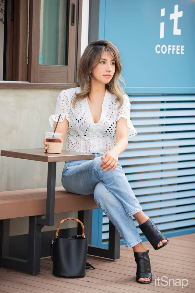 カジュアルな印象になりやすいデニムコーデですが、ふんわりとした白トップスを合わせればキュートに変身♡ 女の子気分を上げてくれるデニムコーデに、イエローバッグを差し色に使って春夏らしい爽やかさを演出して♪