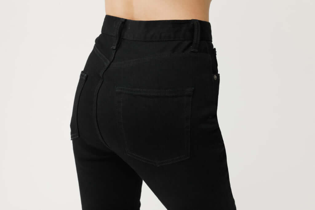 ヒップにもスタイルアップの秘密が。ポケットの位置など、キュッと上がって見えるよう緻密に計算しつくされています。