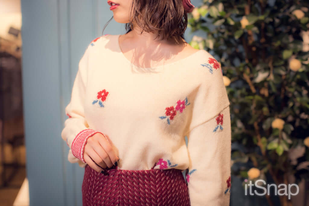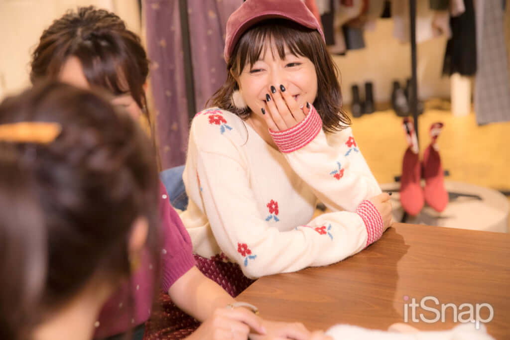 安奈「私が着てるニットも袖に柄が入ってるところがお気に入り。袖まで柄が入ってるってあんまりない気がする!」