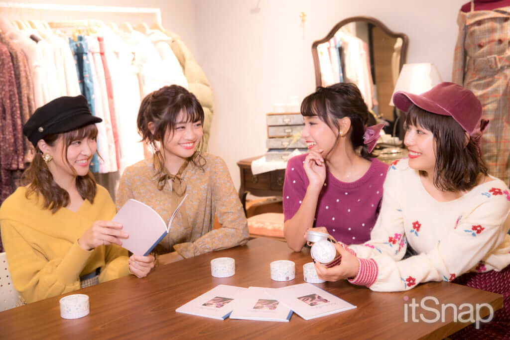 まずはdazzlinのプレスルームを4人がチェック! まだ店頭に並んでいない最新の秋アイテムを、いち早く堪能していただきます♡ 気になるアイテムを見つけたら、4人がそれぞれの自己流コーデに挑戦! 秋冬のトレンドをたっぷり詰め込んだ自分なりの着こなしを考えてもらいました!