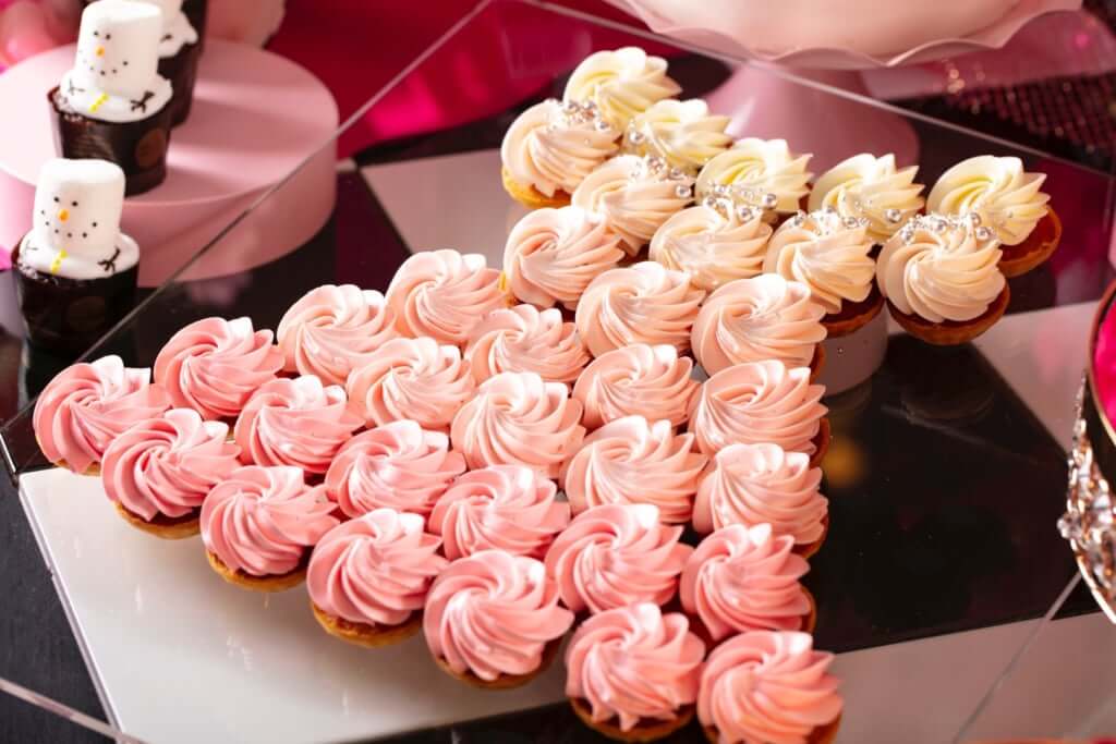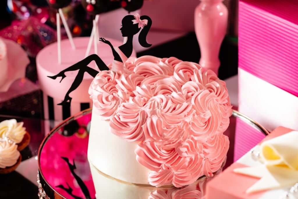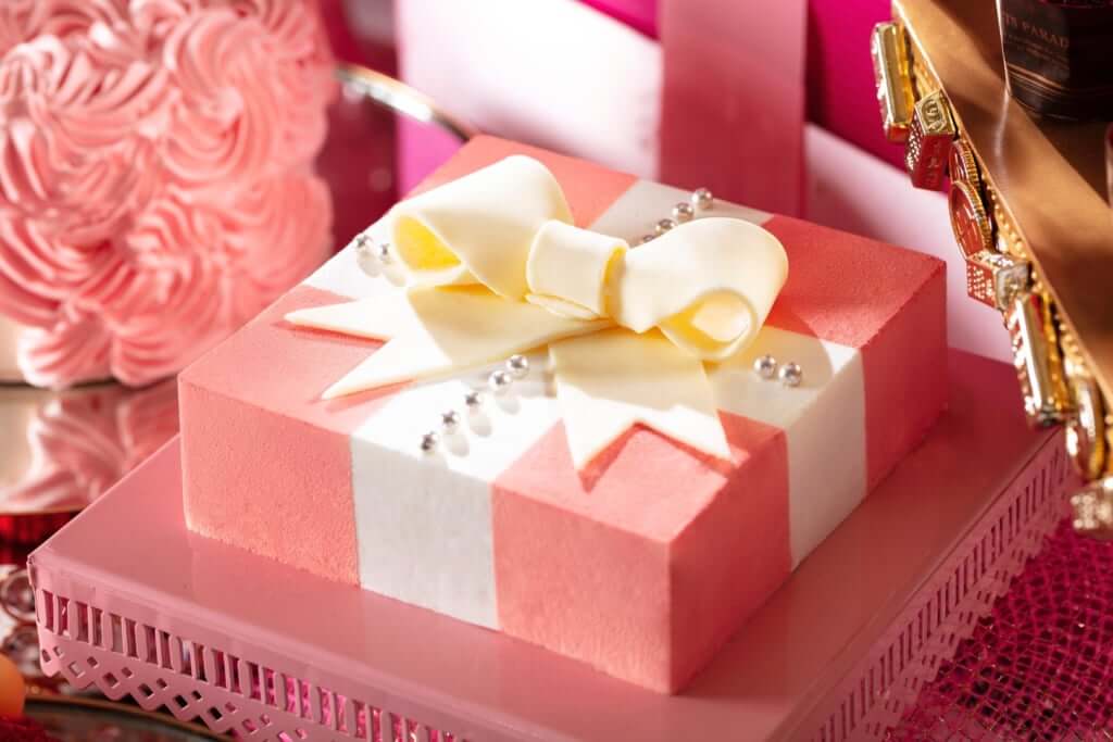 ヴィヴィッドなピンクのクリスマスツリーの下には、女子がプレゼントに欲しいドレスや、宝石、花などを模したスイーツ、そしてクリスマスプレゼントを用意する可愛らしいトナカイやサンタ、スノーマンの妖精のスイーツたちが大集合! 毎回大人気のフォトスポットには、等身大のプレゼントボックスに入って撮影ができるセットが設置されています。女子の最強カラー・ピンクを中心に彩られたビュッフェのテーブルはもちろん、黒や白で統一された大人スタイリッシュな空間もインスタ映え抜群! 写真を撮るのをお忘れなく♡