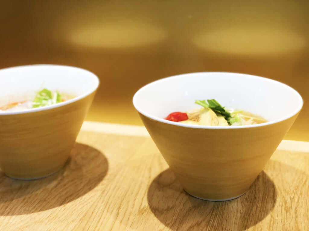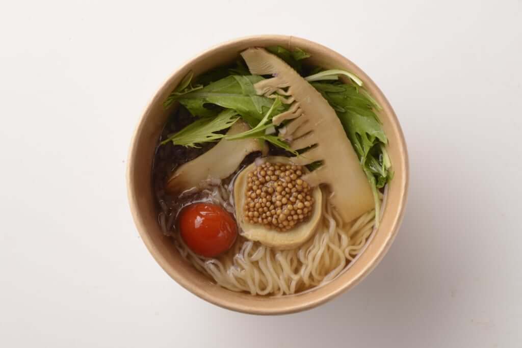 「ヴィーガンヌードル」はスープの優しい旨味が味わえるシンプルな一品。贅沢にトッピングされた素揚げの筍がポイントです。シンプルながらも後味が残るのはマスタードが効いているから。そして調理の最後にかけられるレモン汁もほのかに香り、汁を最後まで飲み干したあとも爽やかさが残ります。