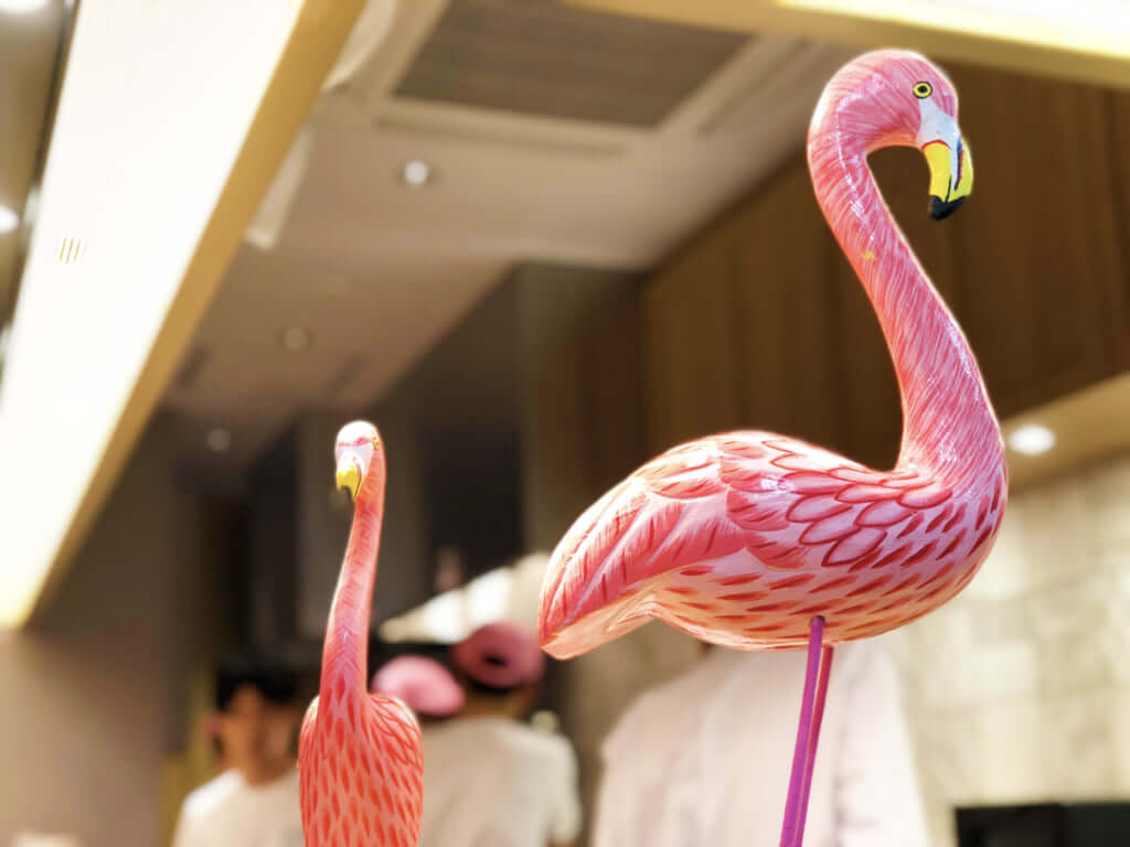 思わず撮りたくなる店頭の鮮やかなピンクフラミンゴ。店内や商品パッケージには、レンゲと形が似ているという理由でピンクフラミンゴが散りばめられています。テイクアウト時は、ピンクフラミンゴのロゴを使用した可愛らしいパッケージに入れてもらえるので、急ぎの場合はこちらもぜひお試しあれ!