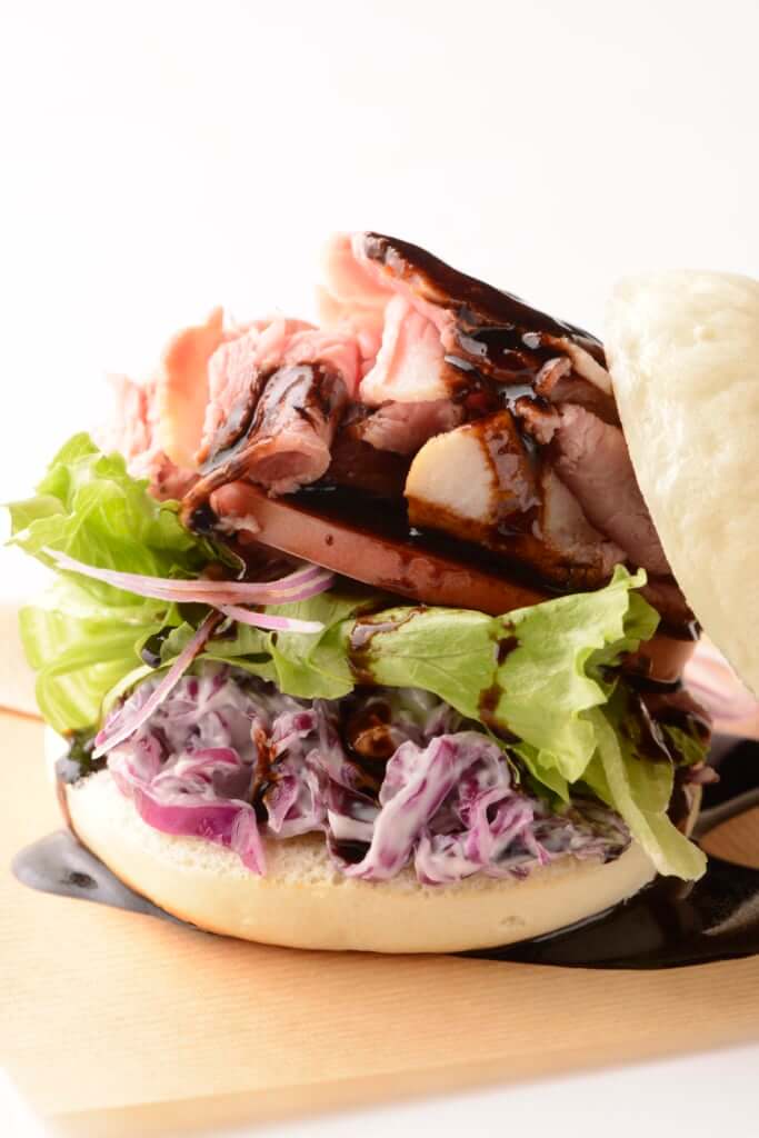 「チャーシューバーガー」は「Chipoon」で唯一お肉を使ったメニュー。豚の肩ロースを低温でじっくりと火を通したチャーシューはジューシー♡ カロリーはさておきお肉が食べたい!という人にオススメです。