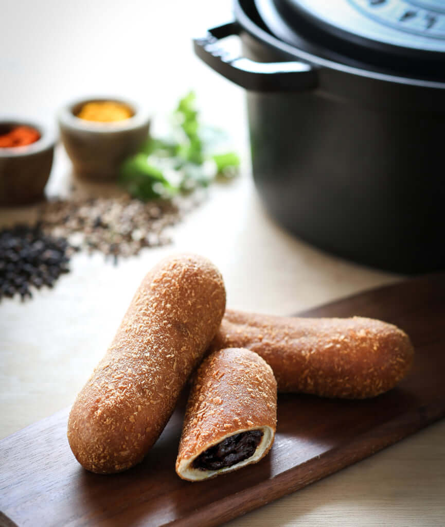 タピオカ粉が入ったパンの生地は、噛めば噛むほどもっちりとした食感!時間をかけて煮込んだ、スパイス香る甘口カレーとの相性も絶妙です。