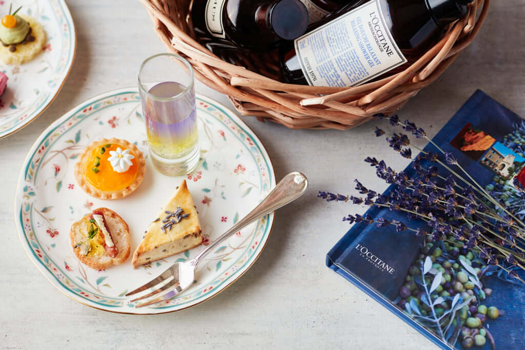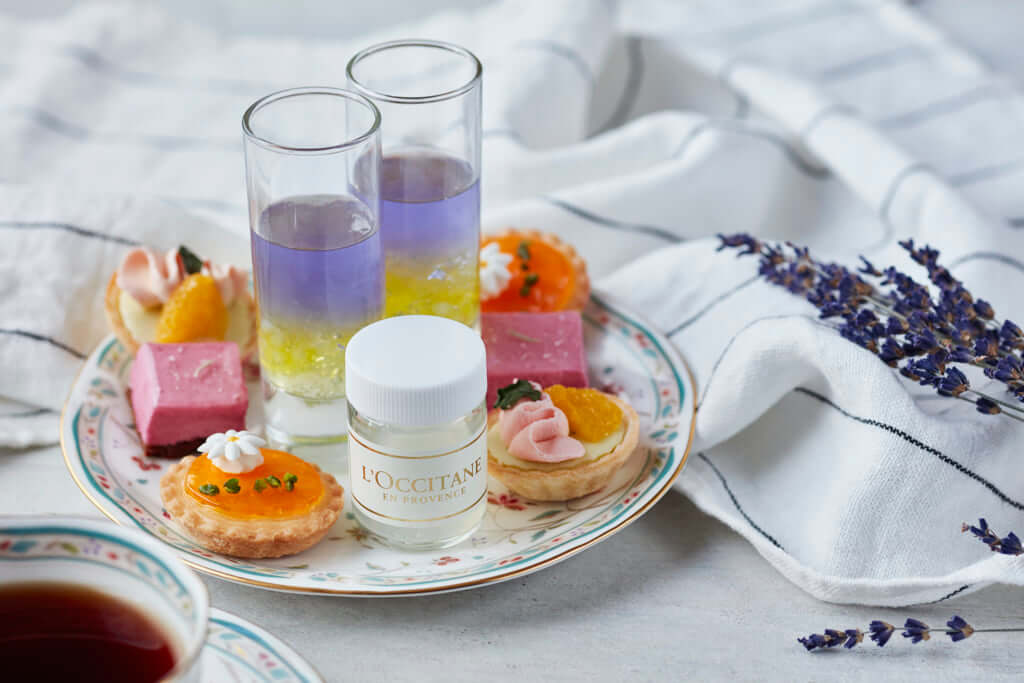 夏に開花し、香りにリラクシング効果があると言われるラベンダーや、リフレッシュ効果のあるミントなど、厳選された植物から抽出されたエッセンシャルオイル。それらを丁寧にブレンドして生まれた「プロヴァンスアロマ」にインスピレーションを受けたメニューがアフタヌーンティーに登場。リキッドを注ぐと色が変化するジュレや、ラベンダー畑を思わせるスコーンなどロマンチックなラインナップで女子会やデートにぴったり! さらに、「ロクシタン リラクシングシャワージェル」の嬉しいお土産付き♡