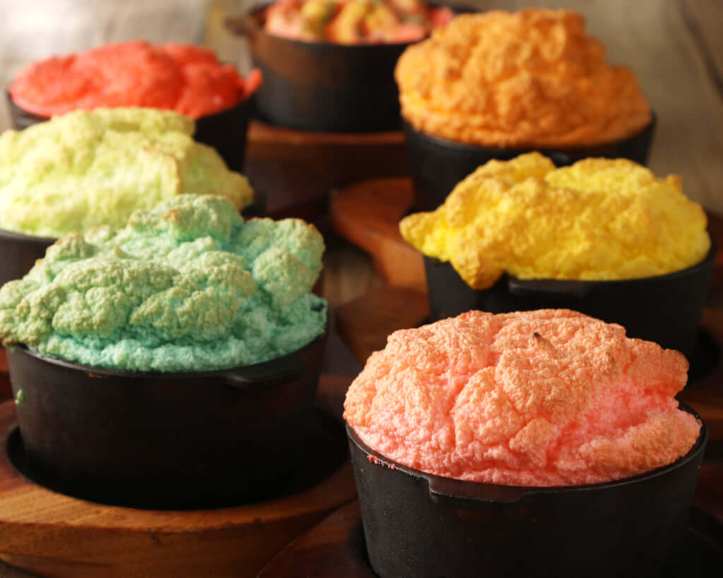 「トサカモミジ」のふわふわなスフレオムレツは、口の中で溶けて消える柔らかな食感で人気。そのオムレツが、期間限定でピンク、グリーン、ブルー、レッド、イエロー、オレンジなどカラフル仕様に♪ しかも、今なら新発売を記念して通常580円のところを、毎日20個まで無料で提供しているんです!