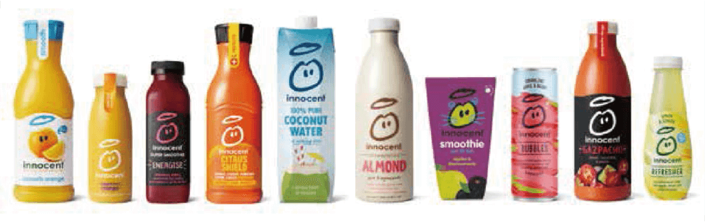 イギリスから始まり、現在ヨーロッパ23カ国でスムージーを販売している「イノセント」。通称「フルーツチーム」と呼ばれる専門チームが世界30カ国以上の生産地を訪ねて見つけてきたおいしいフルーツを、絶妙なバランスでブレンドしています。スムージーはすべて果汁100%、または果汁・野菜汁100%で、濃縮還元果汁は入っていません。もちろん甘味料、合成着色料、増粘剤は一切不使用。フルーツや野菜本来の贅沢な美味しさと、フルーティーで飲みやすい口当たりが特徴です。
