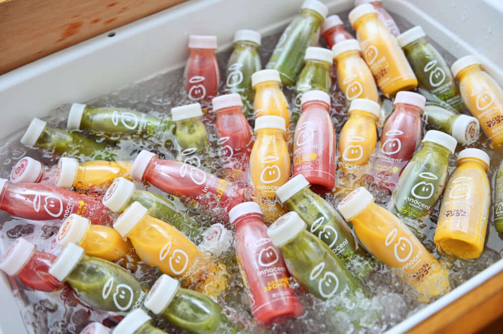 「イノセント」はイギリスのとある大学の同級生3人によるブランド。1998年、3人は音楽フェスで副業として初めてスムージーを売り、「今の仕事(サラリーマン)を辞めてスムージーを売った方がいい?」と書いた看板と『YES』『NO』のゴミ箱を設置しました。スムージーの空きボトルをどちらかのゴミ箱に入れてもらうようにし、スムージーのビジネスを始めるかどうかお客さんに尋ねたのです。結果は、“YES”のゴミ箱が満杯に。それが「イノセント」の始まりでした。