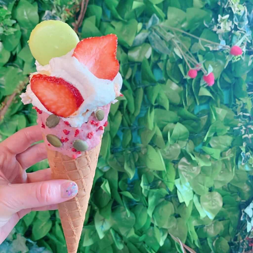 ショートケーキを注文すると、まるでアイスクリームのようにコーンに入った状態で登場するからビックリ! おしゃれなスタンドに立って出てくるのが斬新で心ひかれます♡ 中には実際にアイスクリームも入っていて、とっても贅沢♪ 見た目も味も100点なんです☆