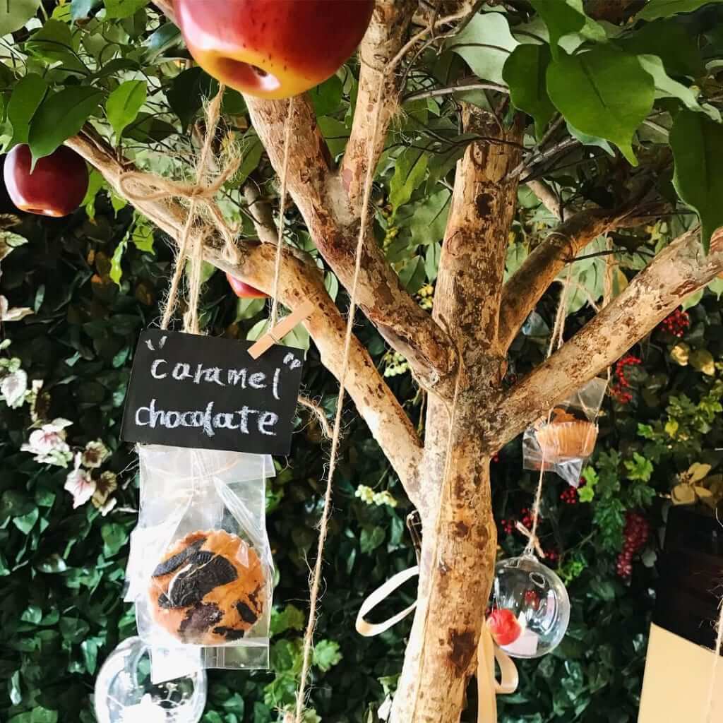 店内にはりんごの木まで! りんご以外にもテイクアウト商品のマフィンがなっていたり…。かわいく装飾されているりんごの木を見ることも「uki-uki cafe」の楽しみのうちの一つになりそう♡