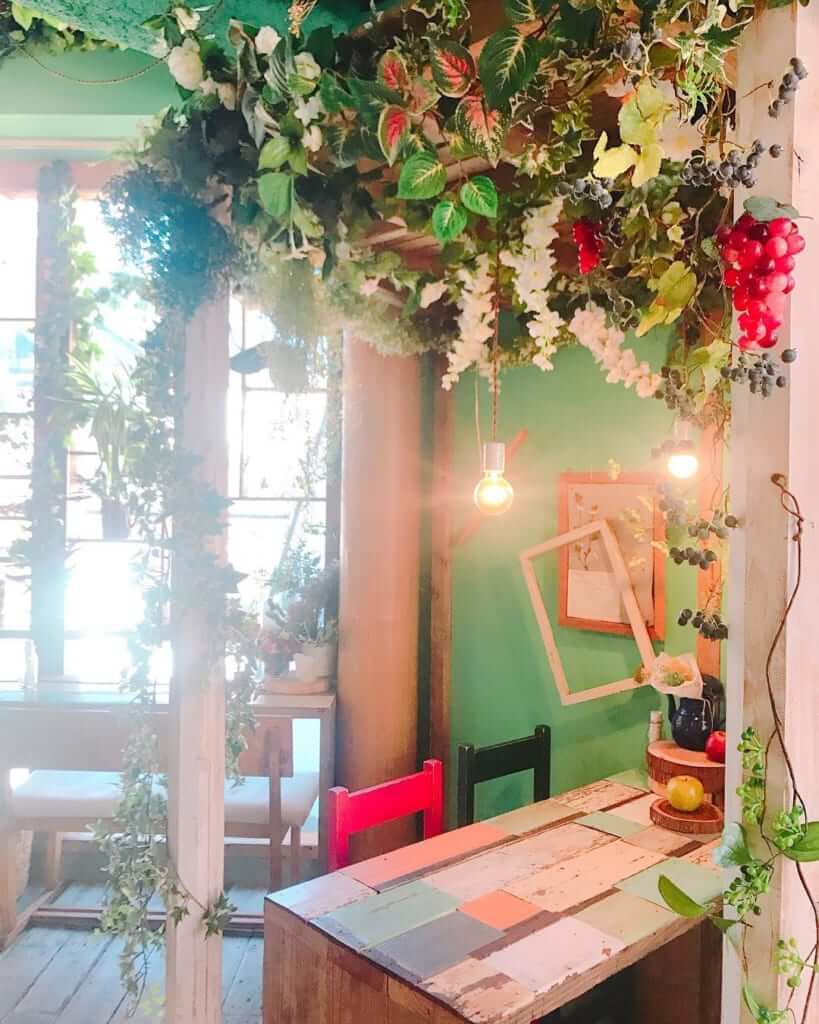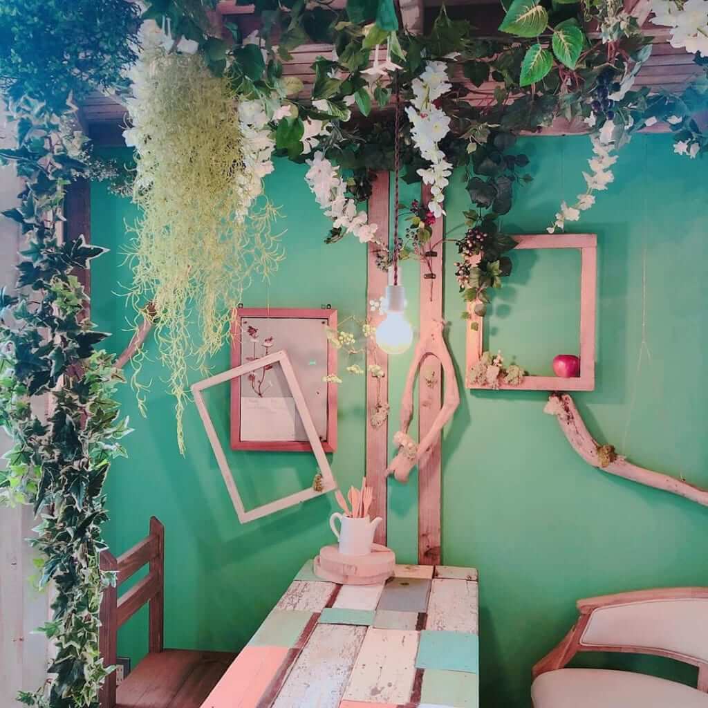 店内はピクニック気分を味わえる、森をイメージしたおしゃれで落ち着いた内装になっています。落ち着きながらも、とにかくかわいくて写真を撮らずにはいられません!