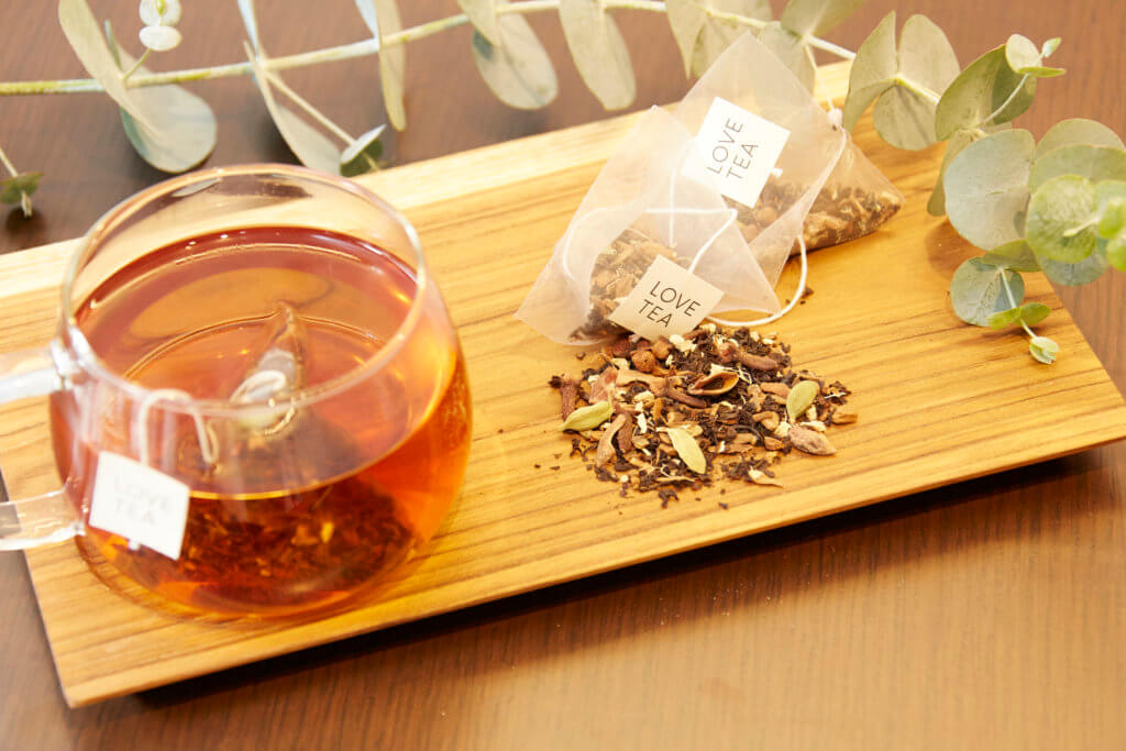 コーヒー以外のレギュラーメニューで注目したいのが、オーストラリアのオーガニック・ティー「LOVE TEA」。このお茶は、高品質のオーストラリア認証オーガニック原料のみを使用し、全て手作業でブレンドされたプレミアムティーなんです。