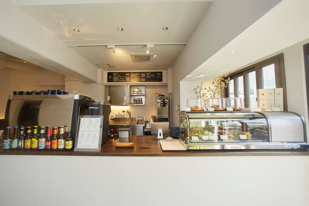 お店はブルーの看板とウッドデッキが目印で、和モダンな外観がおしゃれ! 外にはテラス席があるので、天気が良い日はコーヒーを片手にテラスで過ごすのがおすすめです。