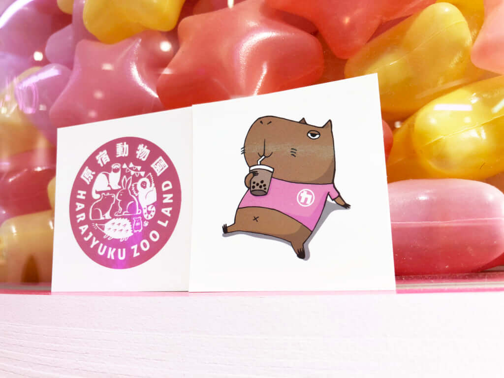 店内の動物は、フラッシュさえ付けなければすべての子が撮影可能。SNS映えするカラフルな店内で動物とたくさん写真が撮れます♪ また、数量限定でカピバラのおやつ ¥540(税込)も販売していて、ごはんをあげることも可能。さらに今ならオープンを記念したステッカーを来場者全員にプレゼント中です!