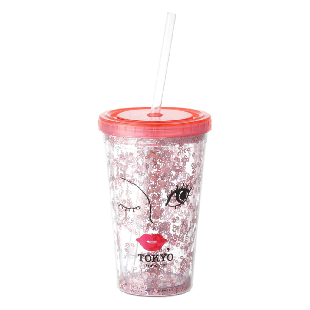 「KISS,TOKYO」のマークが女の子の表情にとけ込んだデザインは「Francfranc」だけのオリジナルデザイン。 キスマークモチーフのグリッターが飲むたびにゆらゆらゆれるタンブラーや、雨の日もハッピー気分になれそうなポップなビニール傘も。また、ポーチは柔らかなコットン素材で、かさばらないからお土産にも◎