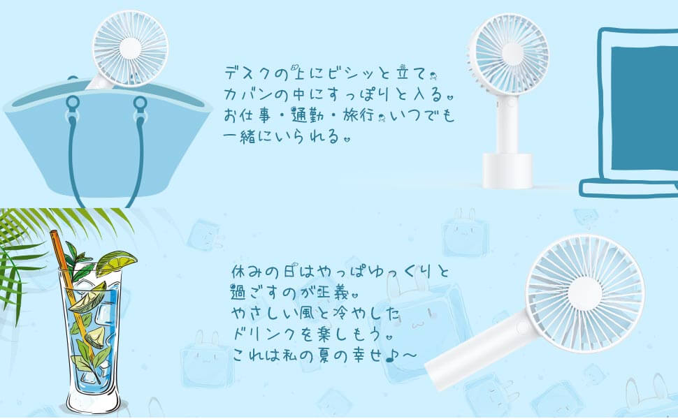 どこでも持ち運べて使い勝手のいい「Elechomes 」の「携帯扇風機/USB扇風機」。熱中症対策グッズとして、夏本番になる前に是非購入してみてください♪