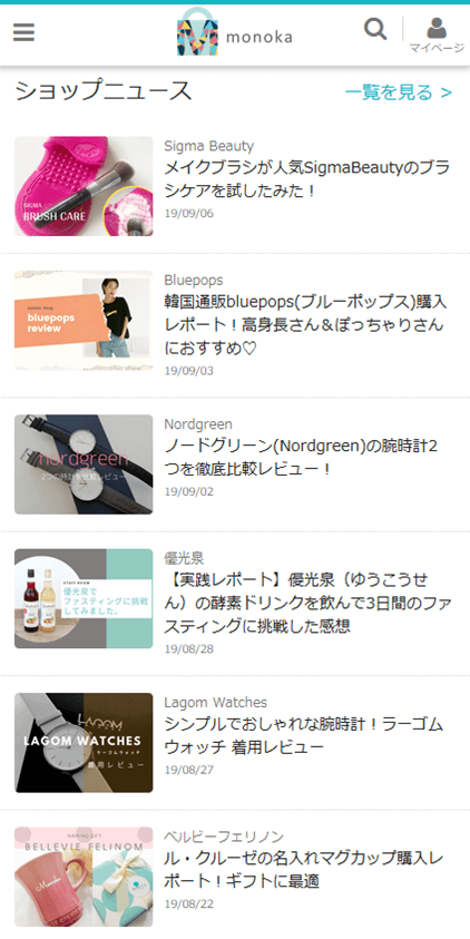 「monoka」でお買物を楽しむポイントとして、見逃せないのが『ショップニュース』。こちらでは「monoka」のスタッフが、気になる商品や海外サイトで実際に注文してから到着までの様子などをレビュー紹介しています。この商品って実際はどんな感じ? 海外からでもちゃんと商品が届くのかな? なんて疑問を解決してくれるはずですよ♡