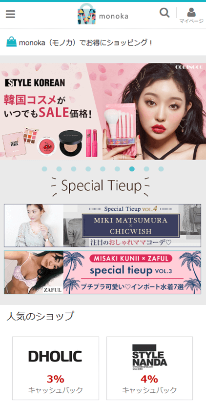 他のショッピングサイトと比べて「monoka」がスゴいのは、私たちが愛用しているショップがちゃんとラインナップされているということ! 「titivate(ティティベート)」などのプチプラファッションサイトから、「STYLENANDA(スタイルナンダ)」や「DHOLIC(ディーホリック)」などの韓国ファッションも充実しています♡