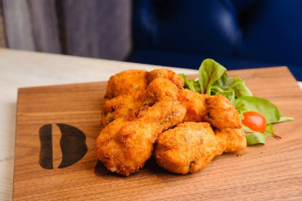 柑橘類の果汁をベースにしたマリネしたチキンをさらにバターミルクに浸して、