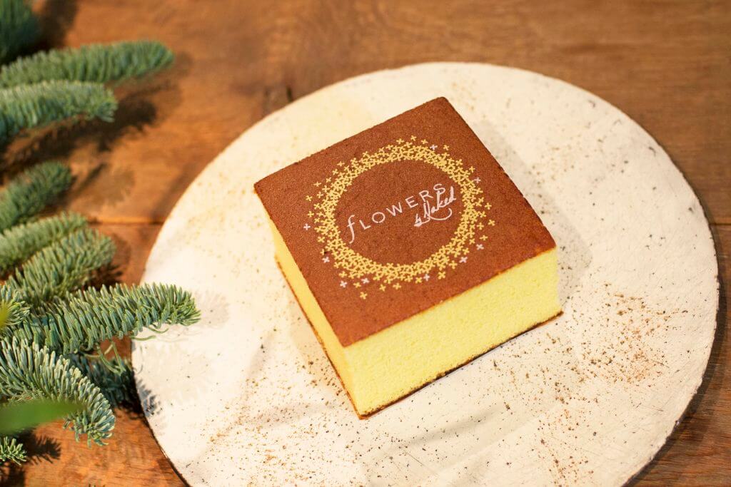 アロマ商品に加え、⽇本橋の⽼舗和菓⼦店「⽂明堂 ⽇本橋本店」とのオリジナルカステラなどのコラボ商品も購入可能です。
