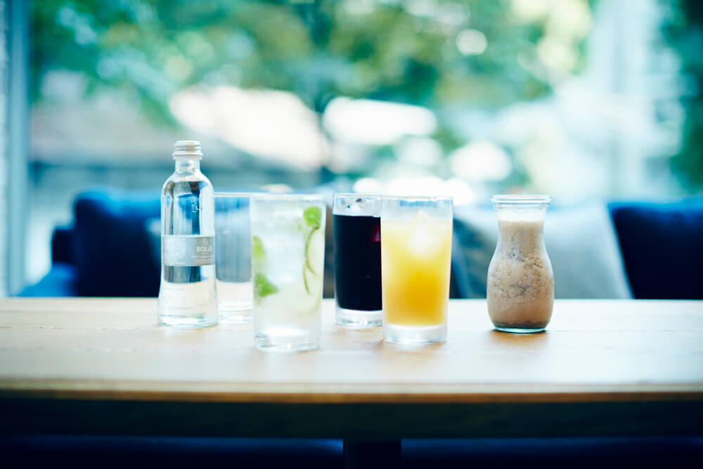 コーヒー以外にも季節限定のスムージーやカラフルなソフトドリンクカクテルのほか、14時以降は、海外のビールやワイン、カクテルなどのアルコールも用意されています。