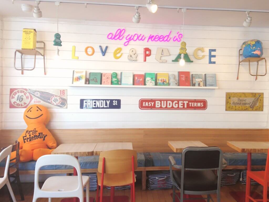 カラフルな文字にたくさんの「ミスター・フレンドリー」のイラストが描かれた外観がインスタ映え抜群で、休日は行列ができるほどの人気スポットなんです!