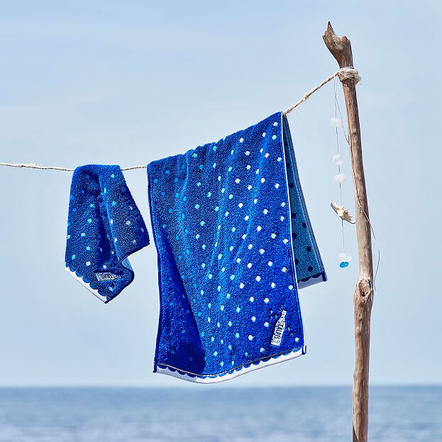 コラボシリーズ第3弾となる今年は、夏にぴったりなビーチアイテムが初登場。青空と白い雲のもと涼しげなデザインのビーチボール、水に浮くフローティングホルダー、接触冷感素材のクッションやタオルなどで夏を盛り上げます!