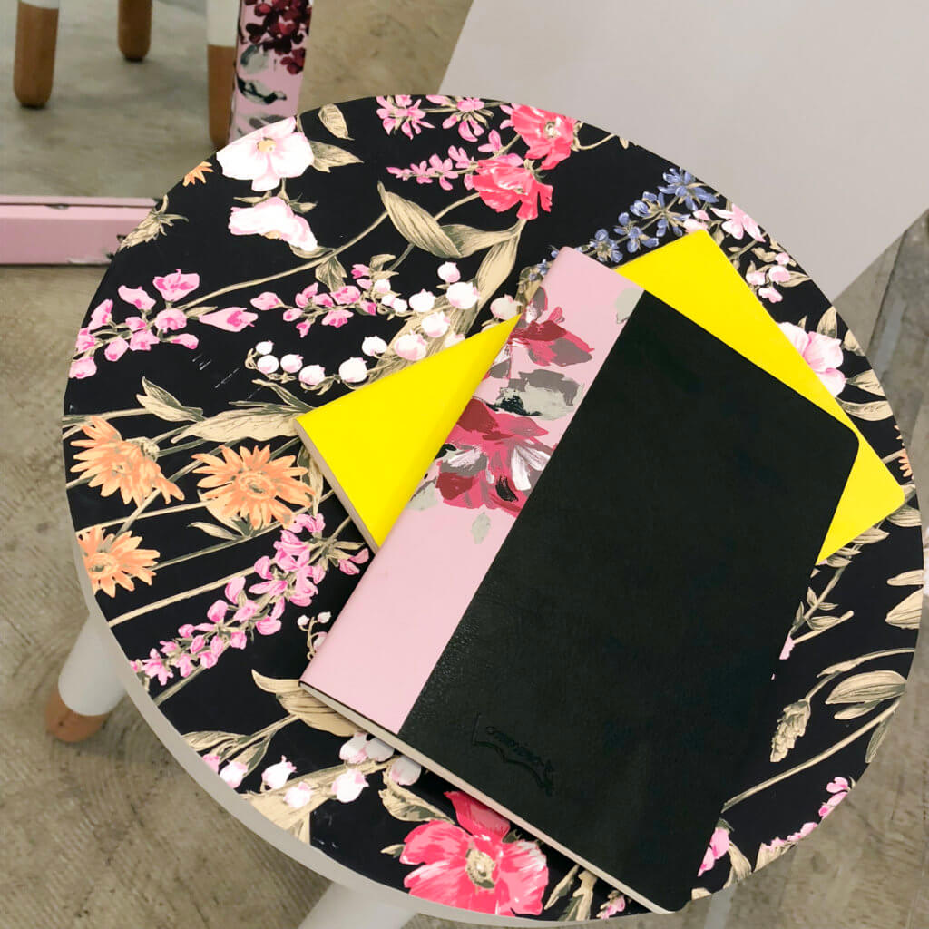 さらに、ウォールペーパーは、壁に貼る以外にも工夫次第でいろいろなアレンジができちゃいます! 例えば、写真のようにシェルフやテーブル、ノートなどに貼ってリメイクすることも可能。これなら、簡単に模様替えが楽しめます!
