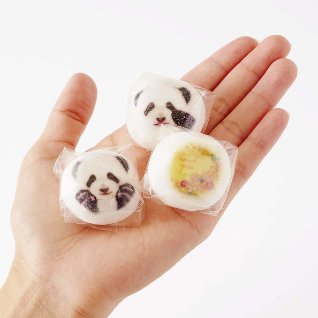 7/18(水)に発売された1箱9個入りの「ミニ和風マシュマロ パンダのほうずい」。子パンダのさまざまな表情がプリントされていて、開けた瞬間から思わず写真を撮りたくなる可愛さです。